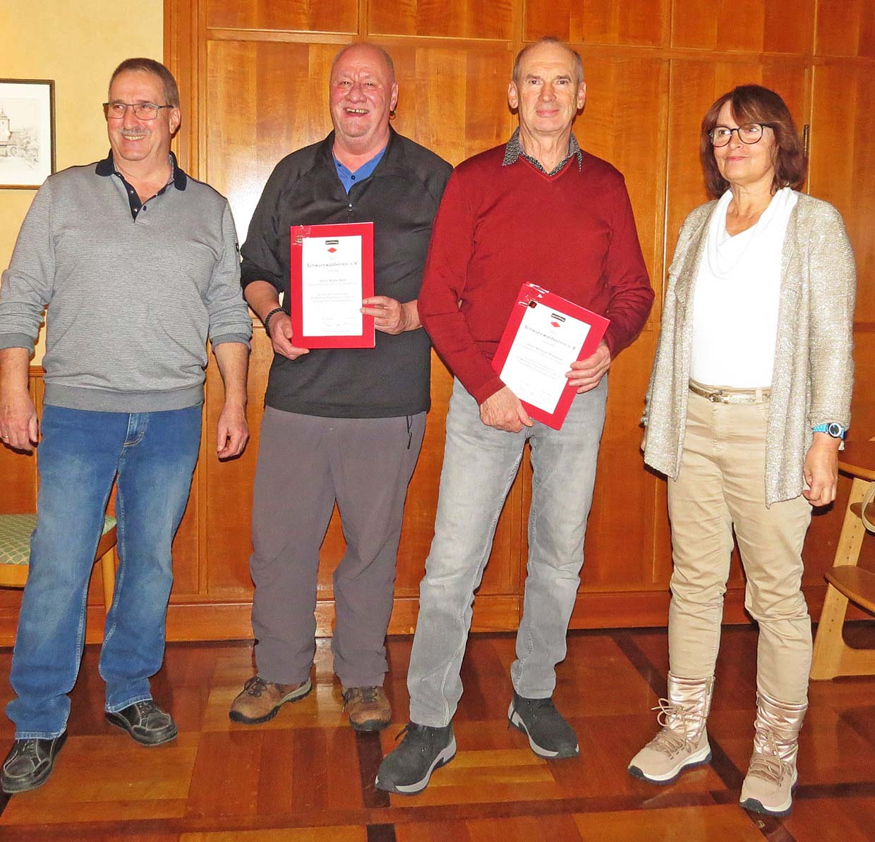 Geehrt wurden außerdem langjährige Mitglieder des Vereins. Für 40 Jahre Treue zum Schwarzwaldverein erhielten Ruth Kiwitt, Rainer Kuderer, Berthold Brosamer und Cornelia Brosamer eine Auszeichnung. Seit 25 Jahren gehören Walter Beck, Martin Burghardt und Claudia Harter dem Verein an.