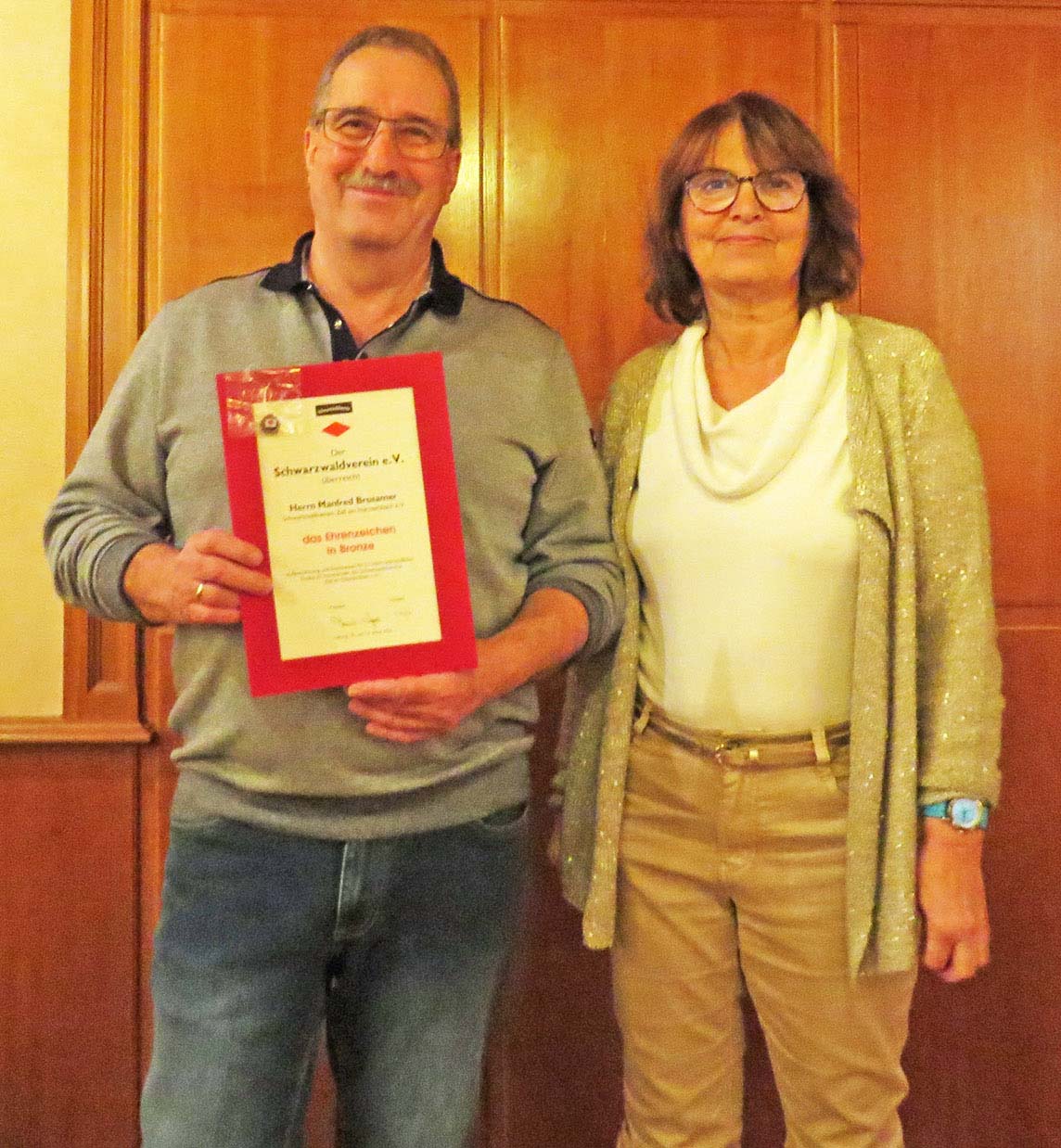 Im Mittelpunkt stand der Vorsitzende Manfred Brosamer, der seit 25 Jahren an der Spitze der Ortsgruppe steht. Für sein langjähriges Engagement erhielt er die Ehrennadel in Bronze. Zur Ehrung waren Gabriele und Dieter Schäfer vom Bezirksverband eigens zur Versammlung gekommen. Gabriele Schäfer würdigte den großen Einsatz des Vorsitzenden, die Versammlung dankte ihm mit langanhaltendem Applaus.